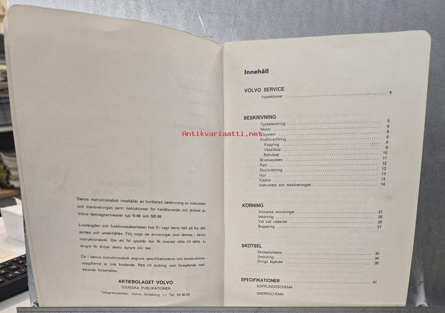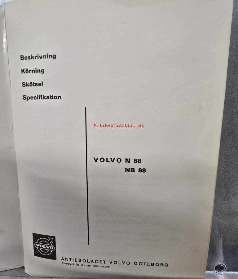 VOLVO N 88 JA NB 88 instruktionsbok