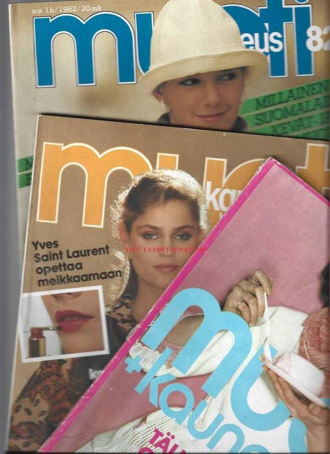 Muoti ja kauneus 1977 nr 3, 1981 nr 2 ja 1982 nr 1 b - Muotilehti yht 3 lehteä