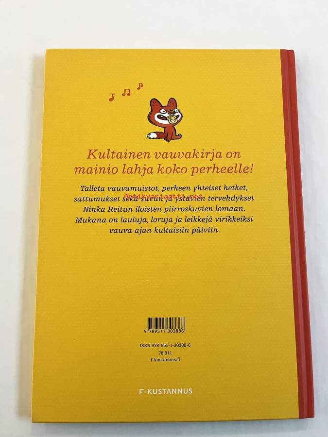 Kultainen vauvakirja on mainio lahja koko perheelle. Talleta vauvamuistot, perheen yhteiset hetket, sattumukset sekä suvun ja ystävien tervehdykset. Ninka Reitun iloisten piirroskuvien lomaan. Mukana on lauluja, loruja ja leikkejä virikkeiksi vauva-ajan kultaisiin päiviin.