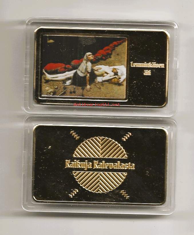 Kaikuja Kalevalasta Lemminkäisen äiti kullattu keräilyharkko muovikotelossa 45x70 mm