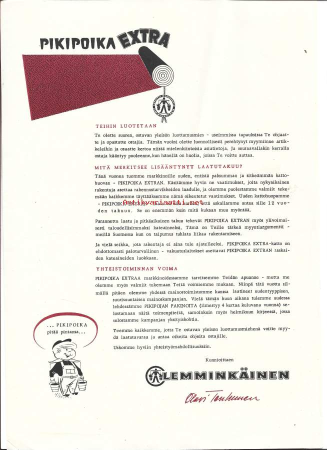 Lemminkäinen Pikipoika EXTRA tuote-esite liikekirje