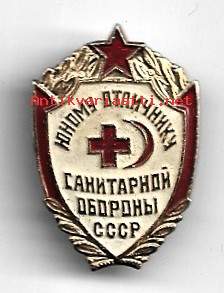 CCCP Punainen Risti / Puolikuu NUORILLE NEUVOSTOLIITON SANITAATIOPUOLUSTUKSEN ERINOMAISILLE - rintamerkki