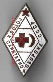 CCCP Punainen Risti / Puolikuu NUORILLE NEUVOSTOLIITON SANITAATIOPUOLUSTUKSEN ERINOMAISILLE - rintamerkki