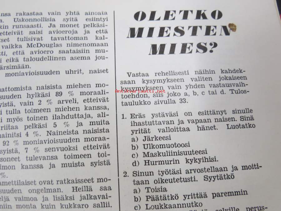 Kotiliesi 1959 nr 10, hyötypalsta suurkaupungissa osa 1, miesten muoti, Wärtsilän emali-mainos, Mary Olki: kuvakudoksia ilman kangaspuita, vieläko osaatte