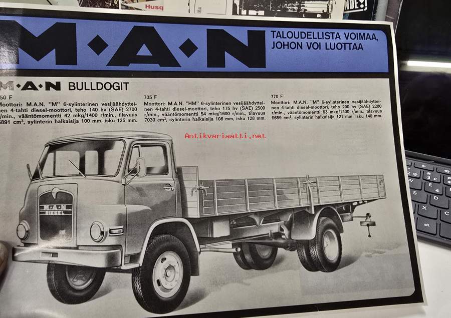 MAN bulldogit 650 F, 735 F ja 770 F myyntiesite 1969.