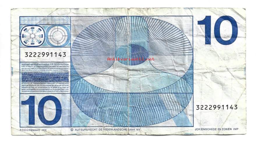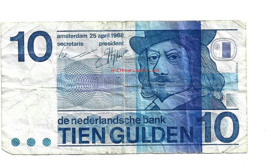 Hollanti Alankomaat 10 Gulden 1968 seteli