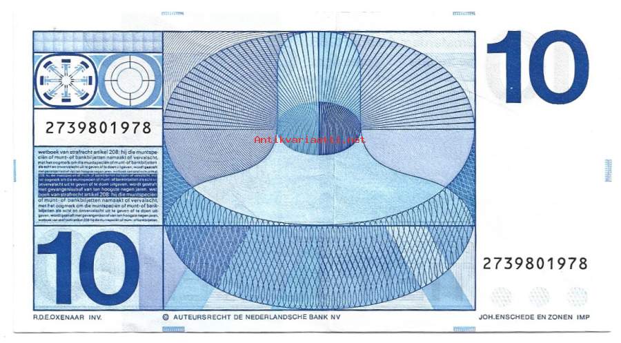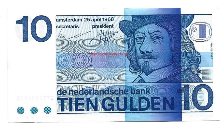 Hollanti Alankomaat 10 Gulden 1968 seteli