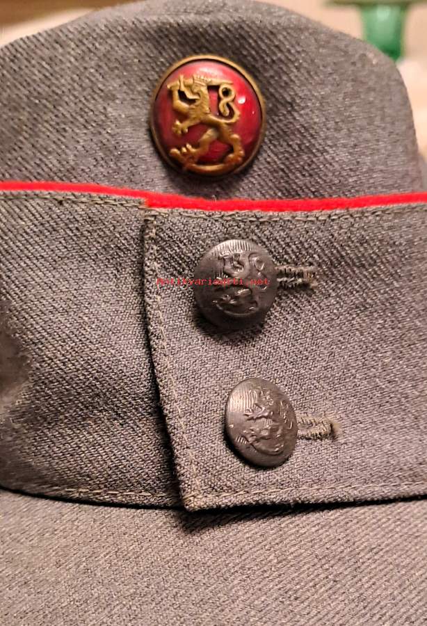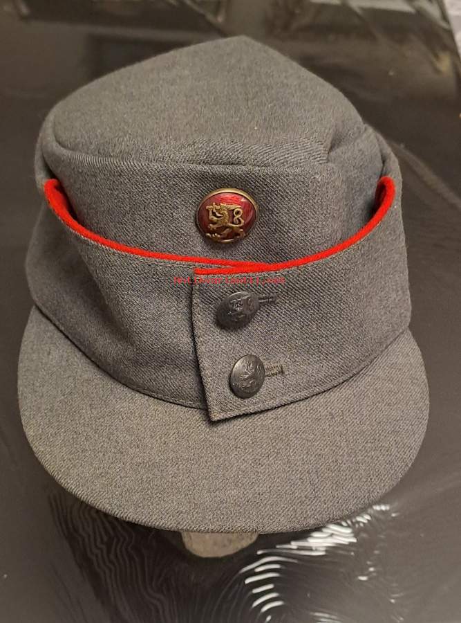Suomen armeijan upseerin kenttälakki "verikauha" käytetty koko 57 VPu "mansikka" upseerin kokardi ilmatorjunta