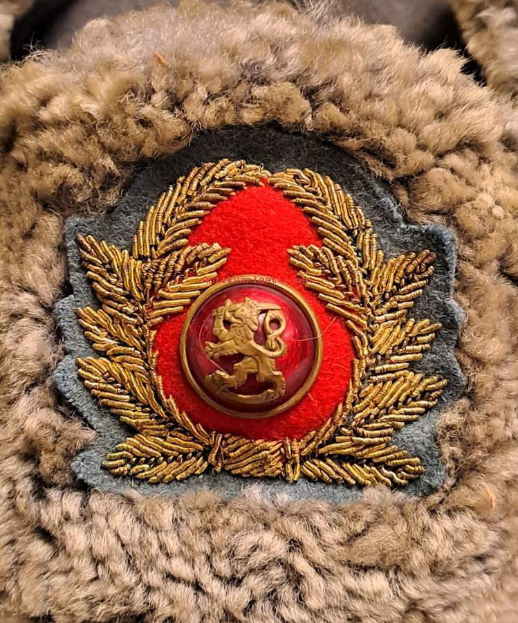 Suomen armeijan upseerin turkislakki käytetty koko 56 VPu "mansikka" upseerin kokardi lehvillä ilmatorjunta