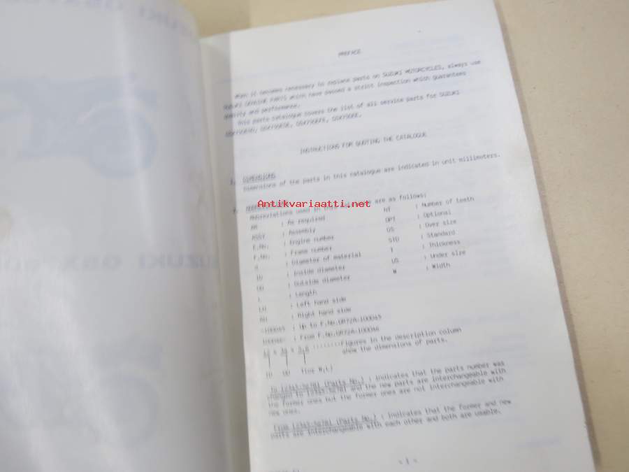 Suzuki RM465X parts catalogue -varaosaluettelo