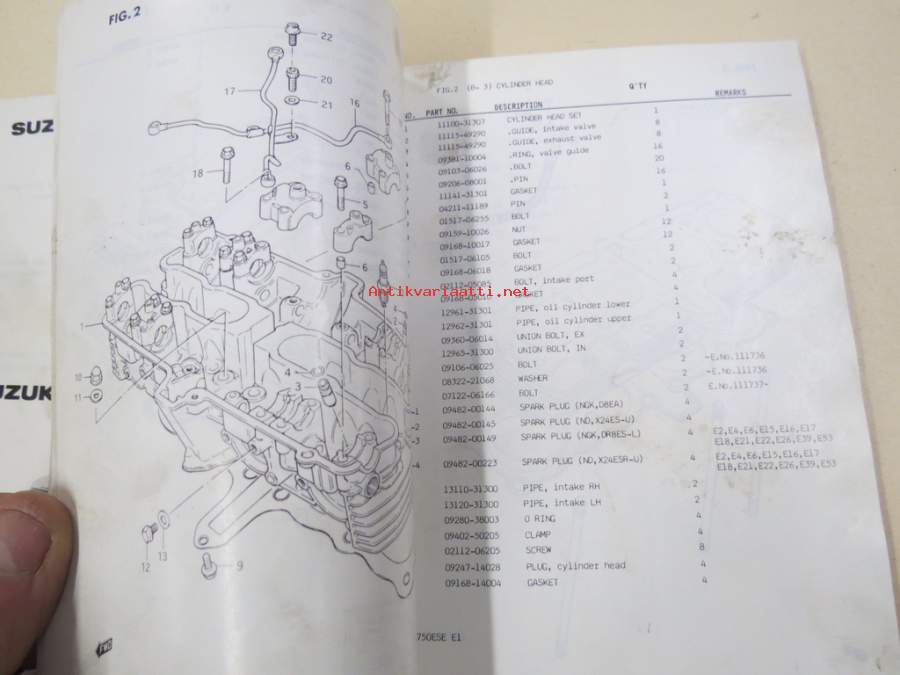 Suzuki GSX750ES (GR72A), GSX750ESD / GSX750ESE / GSX750EFE / GSX750EE parts catalogue -varaosaluettelo
