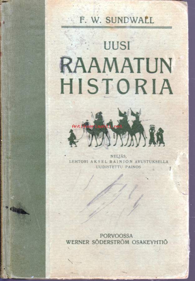 **F. W. Sundwallin "Uusi Raamatun historia kansan opetusta varten" vuodelta 1915 on WSOY:n julkaisema, kuvitettu teos, joka tarjoaa raamatunhistoriaa kansanopetukseen, sisältäen maan- ja kansatieteellisiä kuvia**