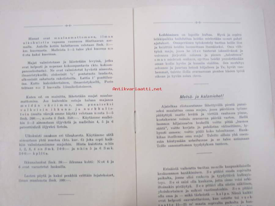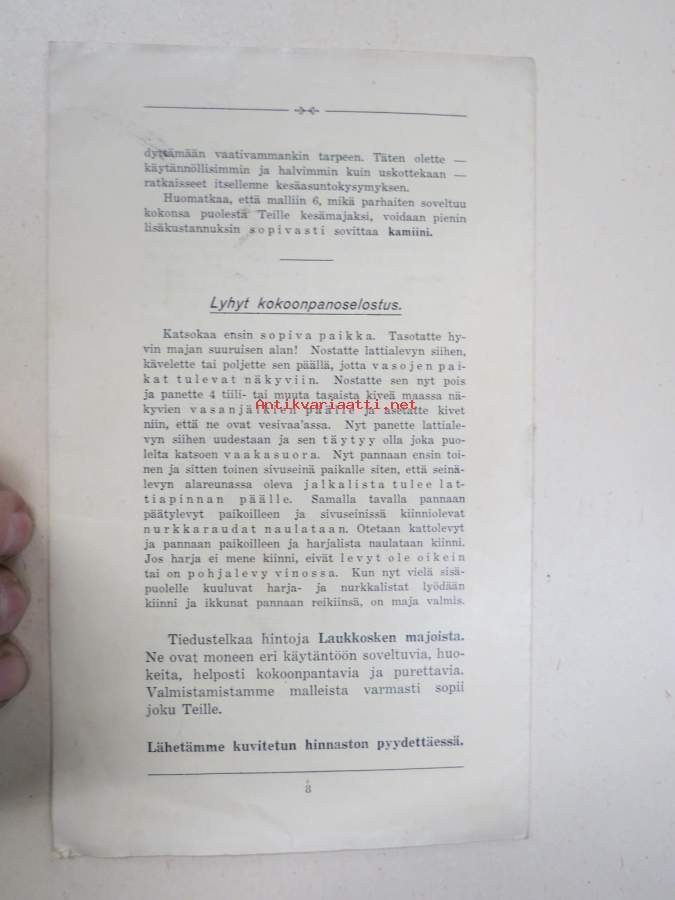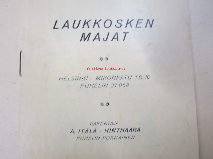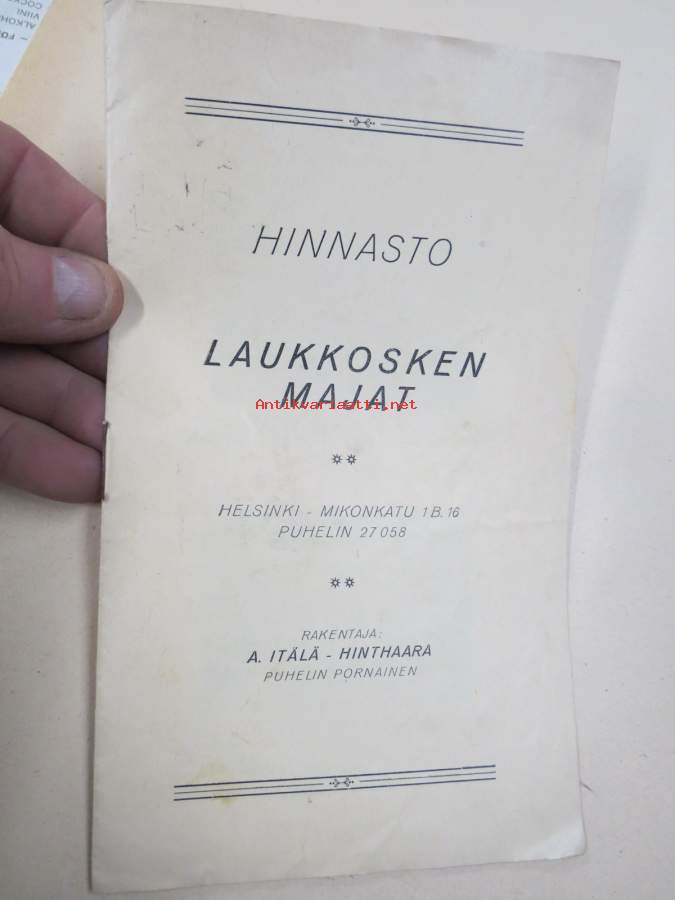 Laukkosken Majat - A. Itälä, Hinthaara, Pornainen, Hinnasto 1928