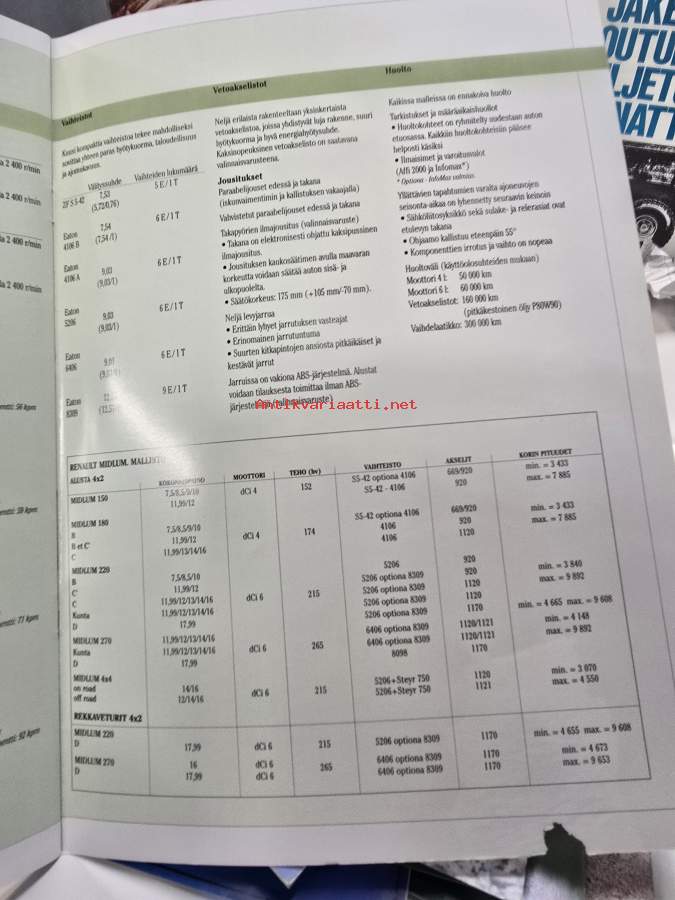 Renault esitteet :Renault Megane 6-sivua, Renault Espace 5-sivua, Renaultit 9 ja 11, 5- sivua Renault Laguna 9-sivua. Selostukset, kuvat, tekniset tiedot