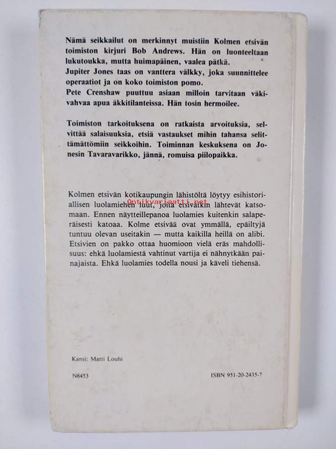 Muu(t) tekijä(t): Juhani Lindholm, Alfred HitchcockSarja: Alfred Hitchcock ja kolme etsivää 33Alkuteos: The Three Investigators in The Mystery of the Wandering Caveman