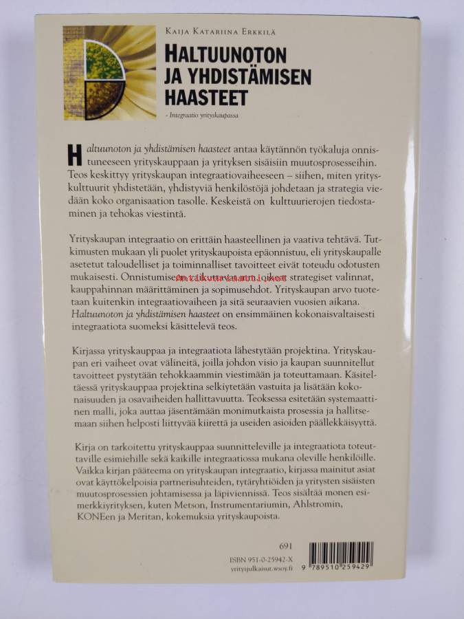 Sarja: EkonomiaAsiasanat: yritykset, yrityskulttuuri, integraatio, yritysjärjestelyt, liikkeenluovutus, yrityskaupat, arvonmääritys, arvo, yhdistäminen