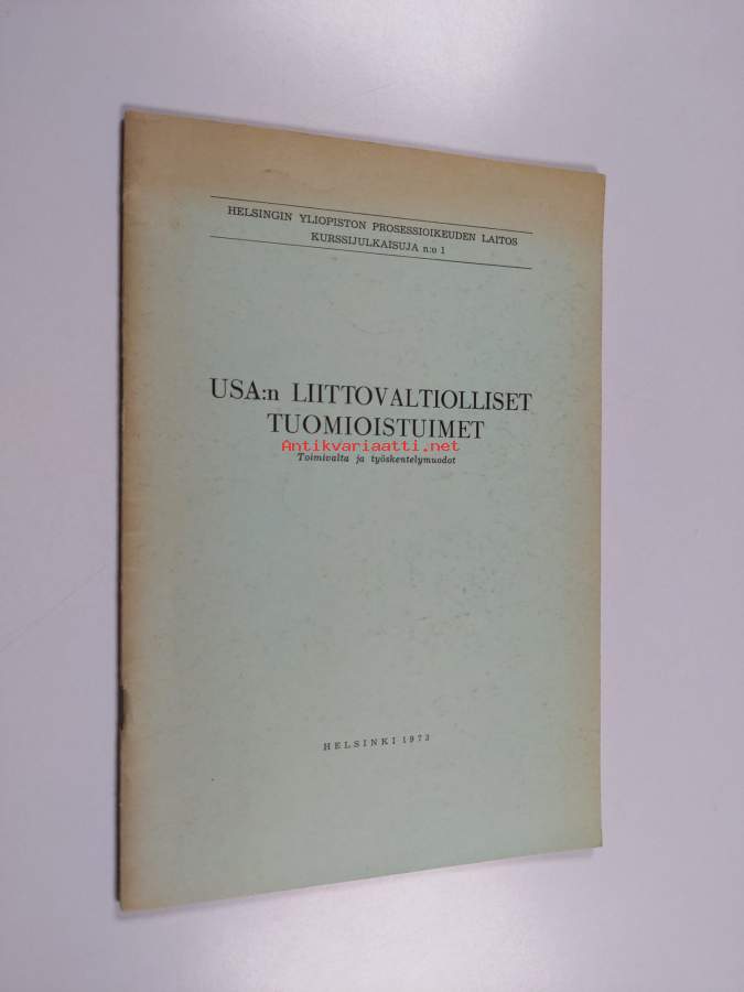 Muu(t) tekijä(t): Juhani WalamiesSarja: Kurssijulkaisuja / Helsingin yliopiston prosessioikeuden laitos 1Alkuteos: The United States courtsAsiasanat: oikeuslaitos