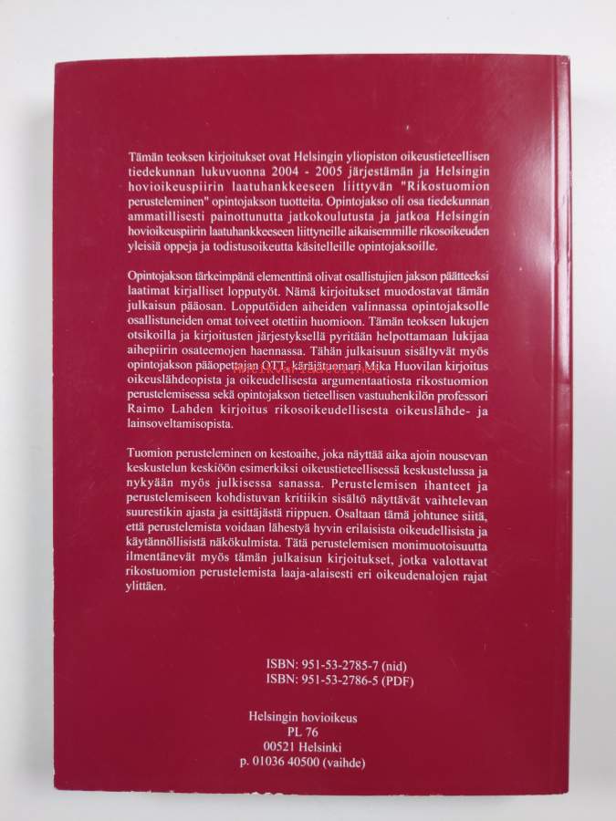 Muu(t) tekijä(t): Raimo Lahti, Timo Ojala ym.Merkinnät: omistajamerkintäSarja: Helsingin hovioikeuden julkaisuja