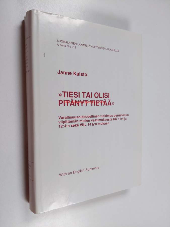 "Tiesi tai olisi pitänyt tietää" : varallisuusoikeudellinen tutkimus perustellun vilpittömän mielen vaatimuksesta KK 11:4 ja 12:4:n sekä VKL 14 :n mukaan
