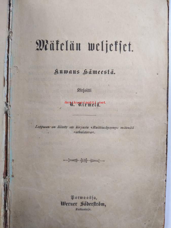 Mäkelän weljekset : kuwaus Hämeestä ; Raittiustyö : esitelmissä