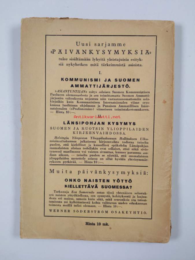 Sarja: Päivänkysymyksiä 1Asiasanat: kommunismi, ammattiyhdistysliike, marxismi, fackföreningsrörelsen, marxism, kommunism