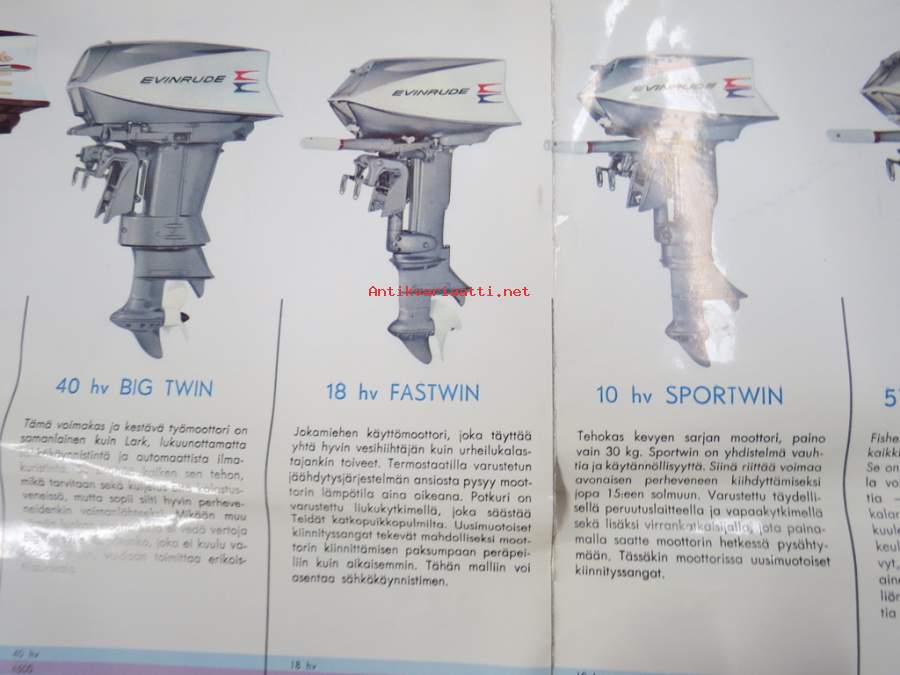 Evinrude perämoottoreiden, Fieherman, Sportwin, Fastwin, Big Twin, Lark ja Starlite -käyttöohjeet