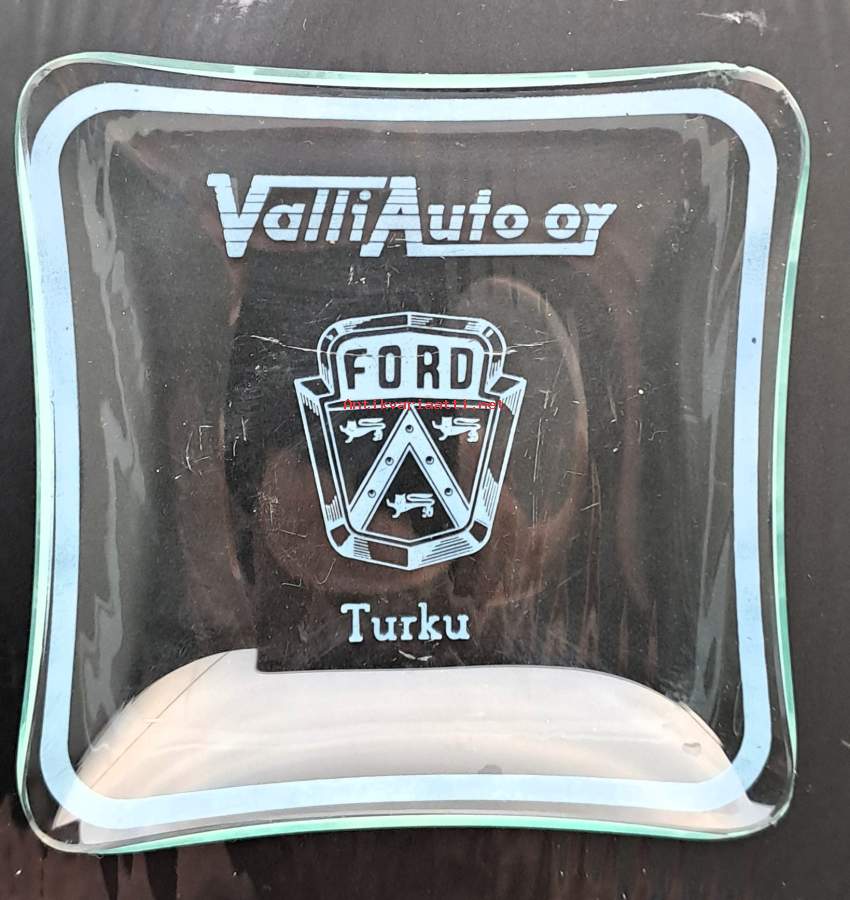 Ford Valli-Auto Turku design mainostuhkakuppi - tuhkakuppi lasia 8,5x8,5 cm 1950 -luku