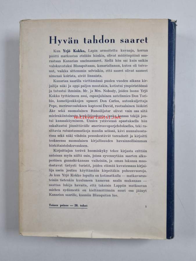 Hyvä. Tarkempi kuntoluokka: K3+ ; Hieman käytön jälkeä kansissa, selkämyksessä hieman vinoutta. Kansipaperin kunto: joitain repeämiä/kulumaa