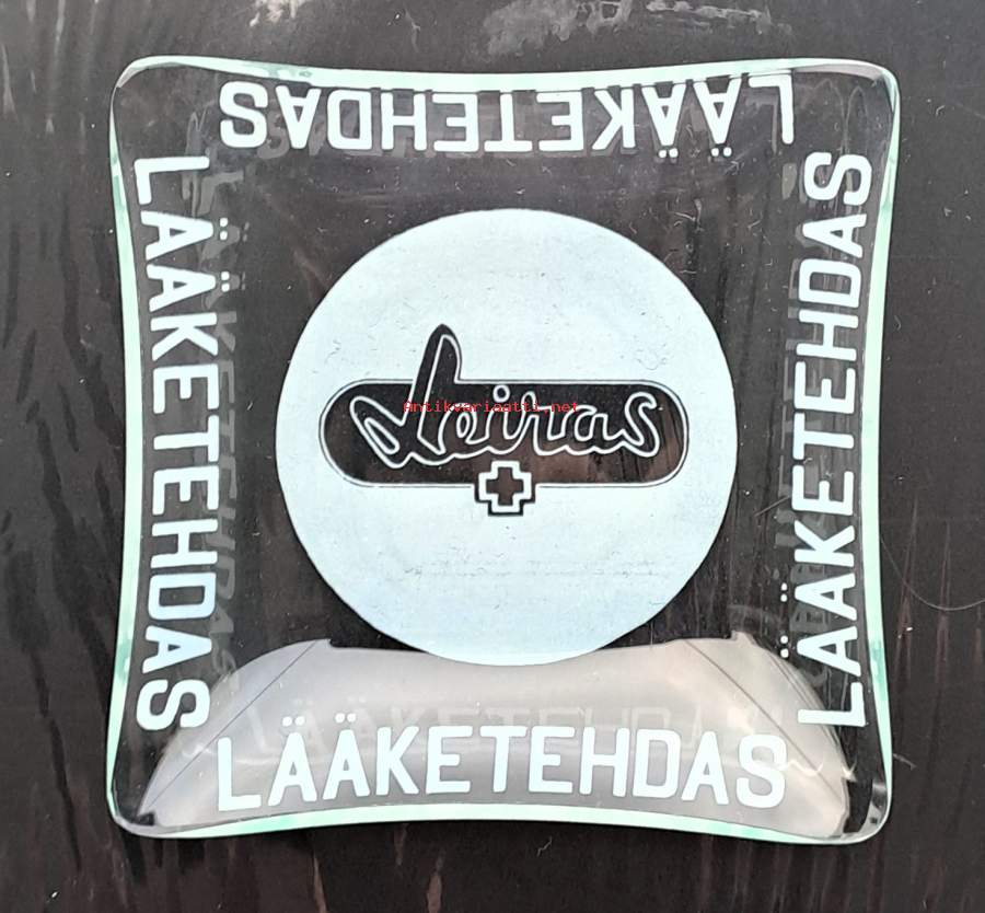 Lääketehdas Leiras design mainostuhkakuppi - tuhkakuppi lasia 8,5x8,5 cm 1950 -luku