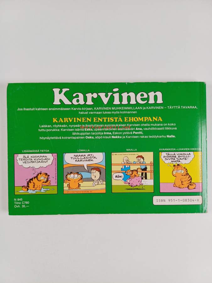 Paksu- Karvinen 2 . Jim Davis Kolme Karvista: Karvisen mitalla, .Karvisen kakkukestit ja Karvinen syö sydämestään. P.2006.