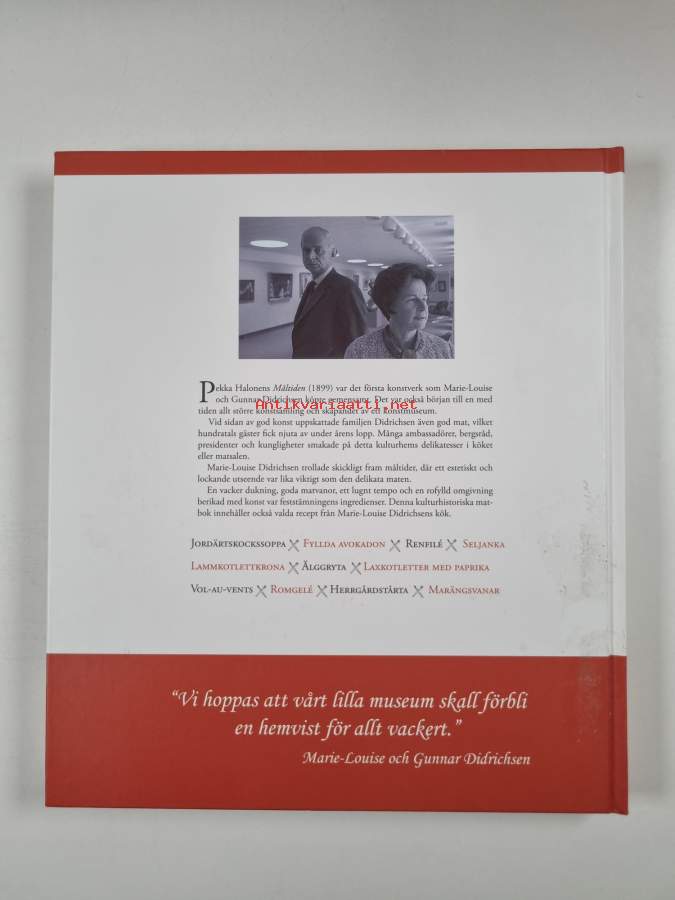 Muu(t) tekijä(t): Ebba Ramm-SchmidtSarja: Didrichsenin taidemuseon julkaisuja [23; Didrichsens konstmuseums publikationer [23Alkuteos: Marie-Louise ja Gunnar DidrichsenAsiasanat: ruokaohjeet, henkilöhistoria, taidemuseot, keräily, taide, gastronomia, mesenaatit, matrecept, konst, personhistoria, konstmuseer, samlarverksamhet, gastronomi, mecenater