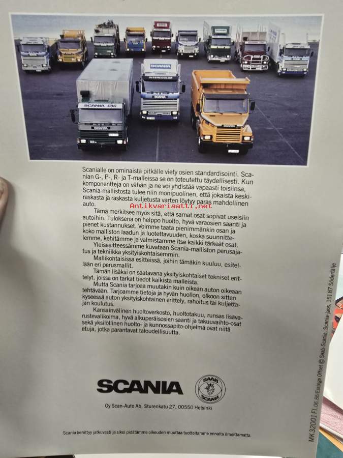 Scania P93 paloauto -myyntiesite (1988) / sales brochure