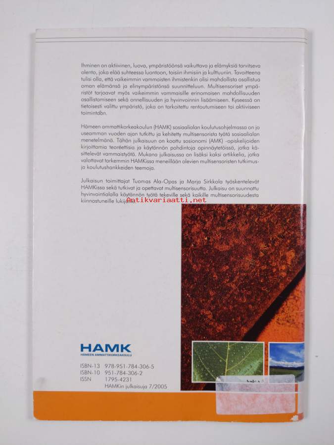 Muu(t) tekijä(t): Tuomas Ala-Opas, Marja SirkkolaSarja: HAMKin julkaisuja 7/2005Asiasanat: aistit, vammaiset, värit, kehitysvammaiset, aistimukset, toimintatutkimus, Aspergerin oireyhtymä, osallistaminen, toiminnalliset menetelmät, vammaistyö, personer med funktionsnedsättning, handikapparbete, funktionella metoder, sinnesförnimmelser