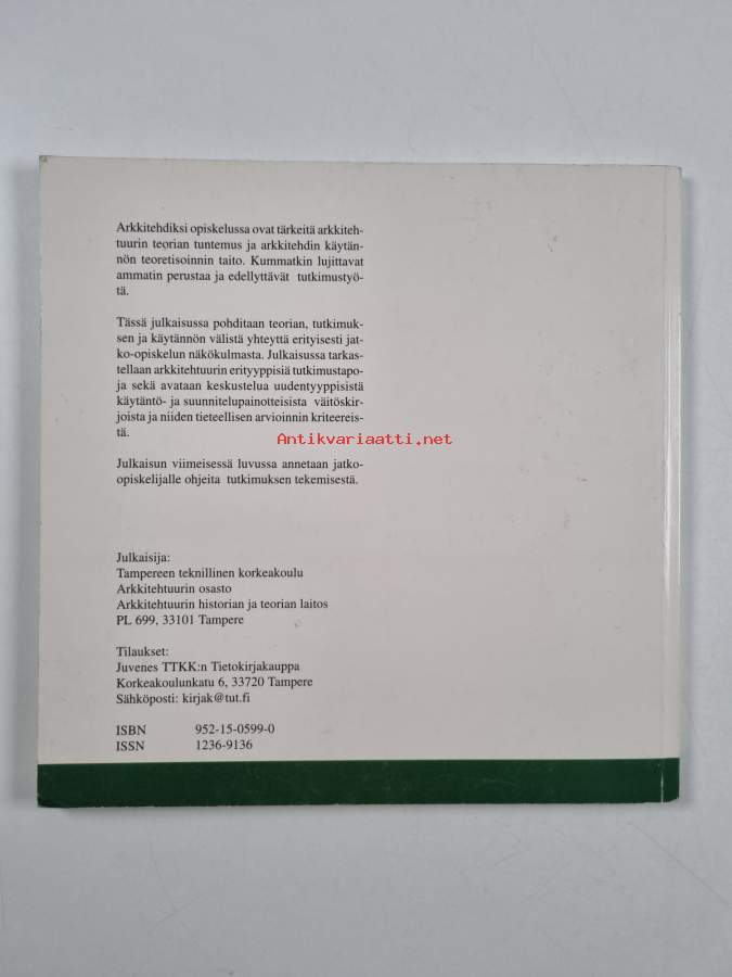 Muu(t) tekijä(t): Juha Suoranta, Juhani KatainenSarja: Suunnitteluperusteet : julkaisuja 3Asiasanat: arkkitehtuuri, tutkimus, koulutus, teoriat
