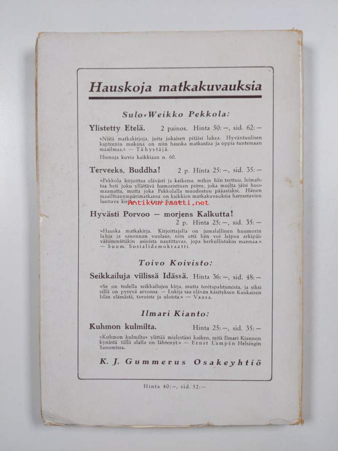 Tyydyttävä. Tarkempi kuntoluokka: K2+ ; Hieman repeämää reunoilla ja kulmissa, selkämyksessä aavistus vinoutta, selkämyksessä lukutaittumaa