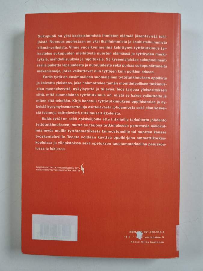 Muu(t) tekijä(t): Karoliina Ojanen, Heta Mulari ym.Merkinnät: omistajamerkintä (leima)Sarja: Julkaisuja / Nuorisotutkimusverkosto/Nuorisotutkimusseura 113Asiasanat: historia, kirjallisuudentutkimus, Internet, koulutus, tytöt, seksuaalisuus, kaunokirjallisuus, naistutkimus, naishistoria, sukupuoliroolit, maahanmuuttajat, monikulttuurisuus, koululaitos, osakulttuurit, sukupuoli, kasvatushistoria, nimittely, media, ruumiillisuus, tyttötutkimus, tyttökirjat, verkkoyhteisöt, nuorisotutkimus, tyttöys, tyttötyö, sukupuolentutkimus, tyttökulttuuri