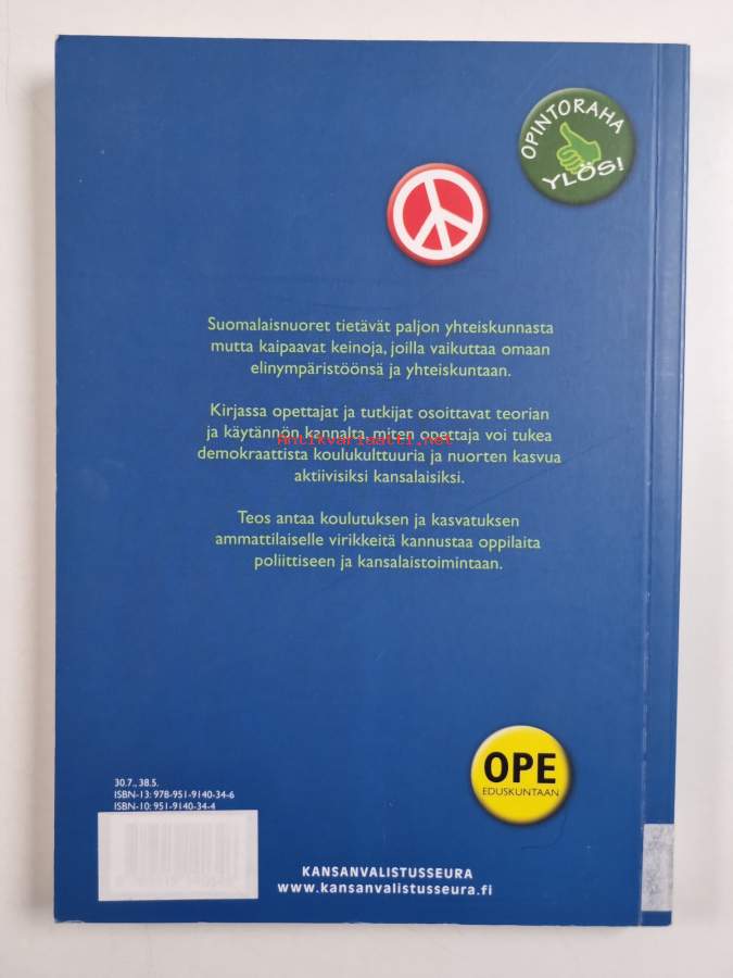 Muu(t) tekijä(t): Kari E. Nurmi, Sirkka Ahonen ym.Merkinnät: omistajamerkintä (leima)Asiasanat: vaikuttaminen, osallistuminen, kansalaistoiminta, koulu, koulut, oppimisympäristö, järjestötoiminta, yksilöllisyys, mediakasvatus, ongelmalähtöinen oppiminen, kansalaiskasvatus, toimintakulttuuri, oppilaskunnat, kouludemokratia