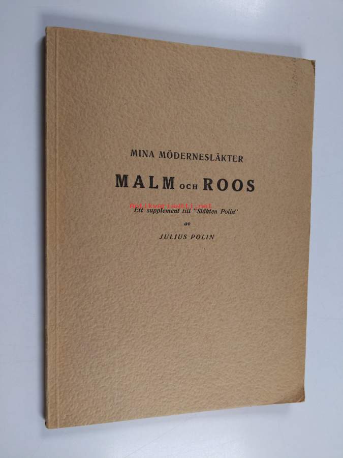 Mina mödernesläkter Malm och Roos - ett supplement till "Släkten Polin" (tekijän omiste)