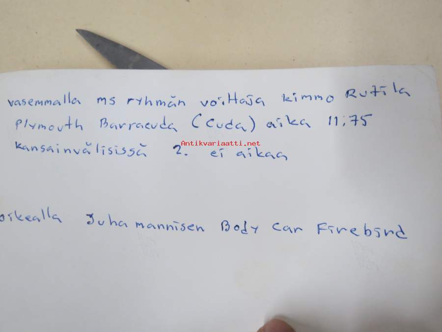 Plymouth Barracuda MS (Kimmo Rutila) & Pontiac Firebird (Juho Manninen) kiihdytyskisoissa - amerikkalaisten autojen harrastuksen alkuaikoja Suomessa -valokuva
