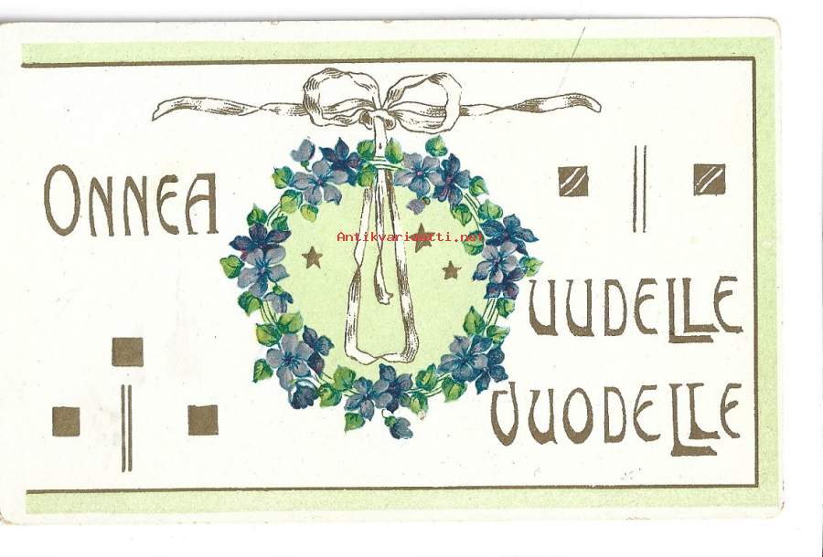 Onnellista Uutta Vuotta 1907 - uudenvuodenkorttiikortti postikortti kohopaino kulkenut