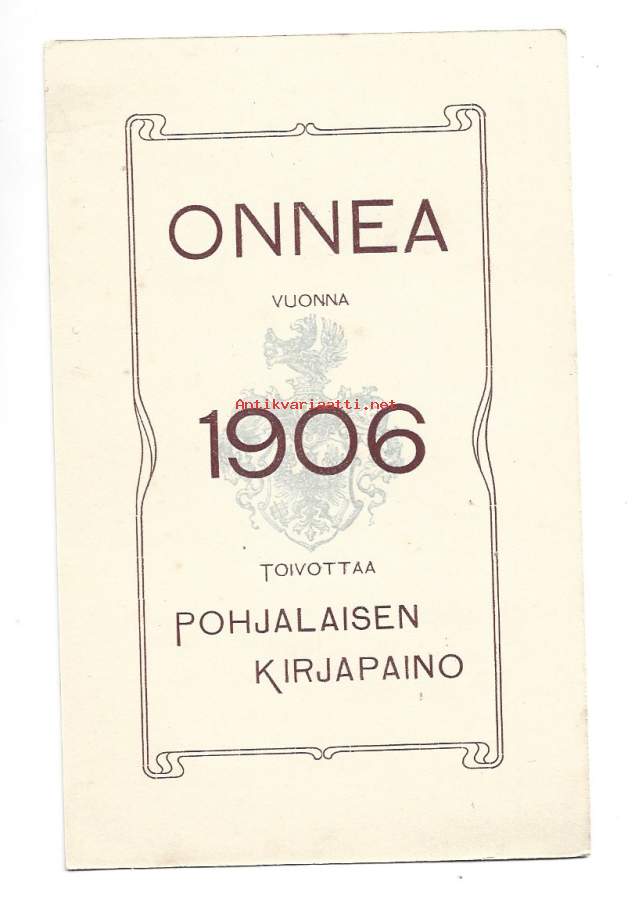 Pohjalaisen Kirjapaino 1906 uudenvuodenkortti mainoskortti kulkematon