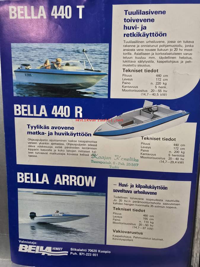 Bella-Veneet ky Kuopio / Bella mainos tuote-esite 2 sivua