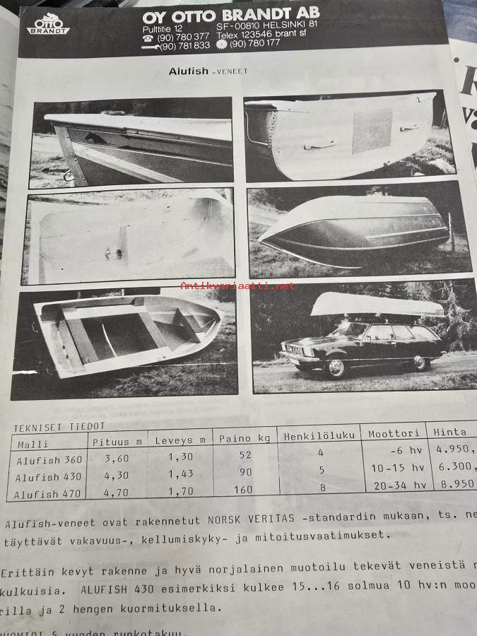Alufish / Otto Brand Oy - vene-esite 1981 4 sivua