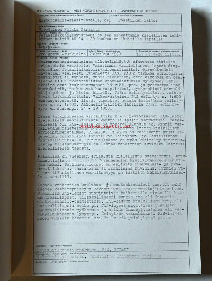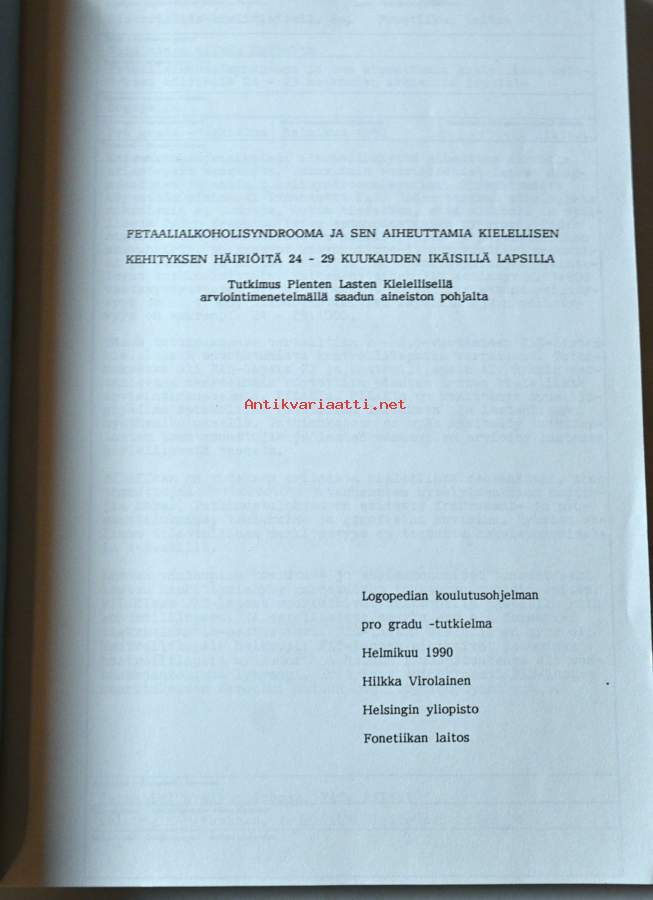 Fetaalialkoholisyndrooma ja sen aiheuttamia kielellisen kehityksenhäiriöitä 2 - 29 kuukauden ikäisillä lapsilla