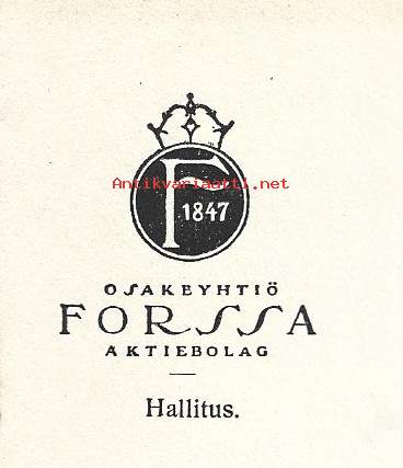 Forssa Works (Forssa Aktiebolag, Axel Wahren), 1880-luku -kangaspakan etiketti, englanninkielinen