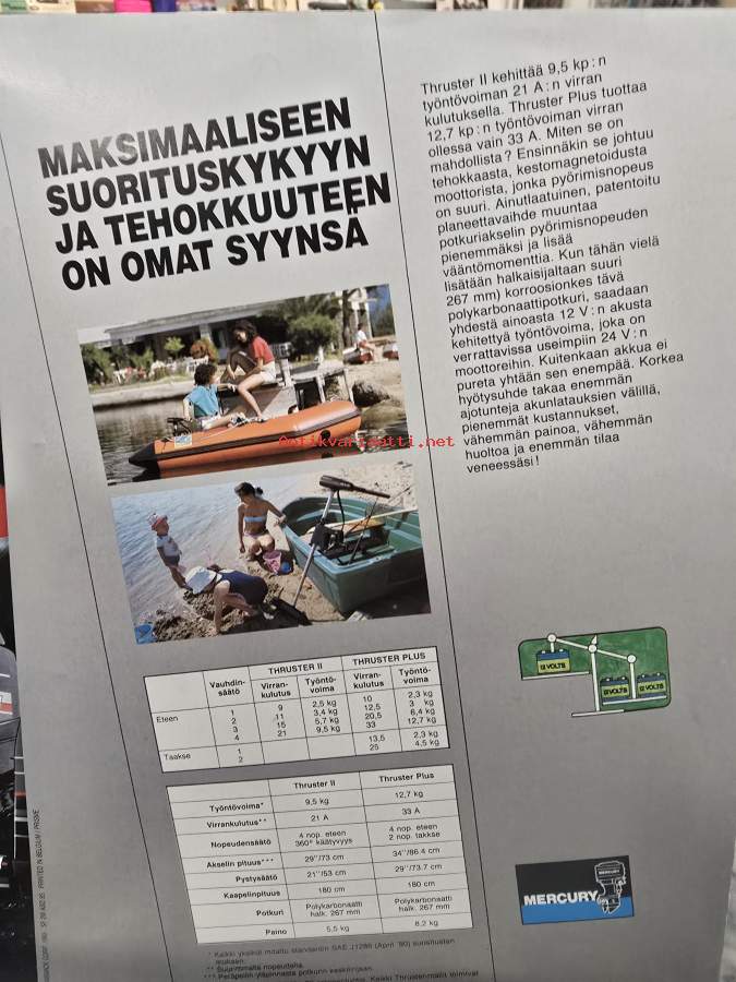 Mercury thruster sähkö perämoottori myyntiesite 1980