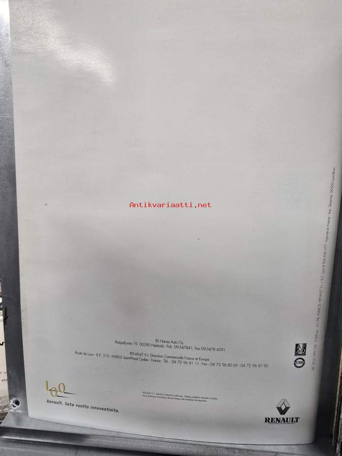 Renault esitteet :Renault Megane 6-sivua, Renault Espace 5-sivua, Renaultit 9 ja 11, 5- sivua Renault Laguna 9-sivua. Selostukset, kuvat, tekniset tiedot