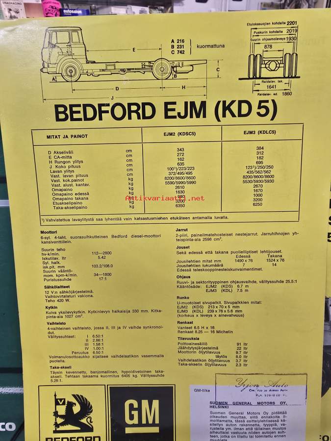 Bedford SB keskiraskas linja-autoalusta -myyntiesite