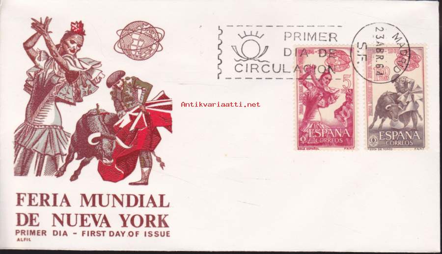 FDC - Espanja - Feria Mundial de Nueva York (23.4.)1964. New Yorkin maailmannäyttely1964