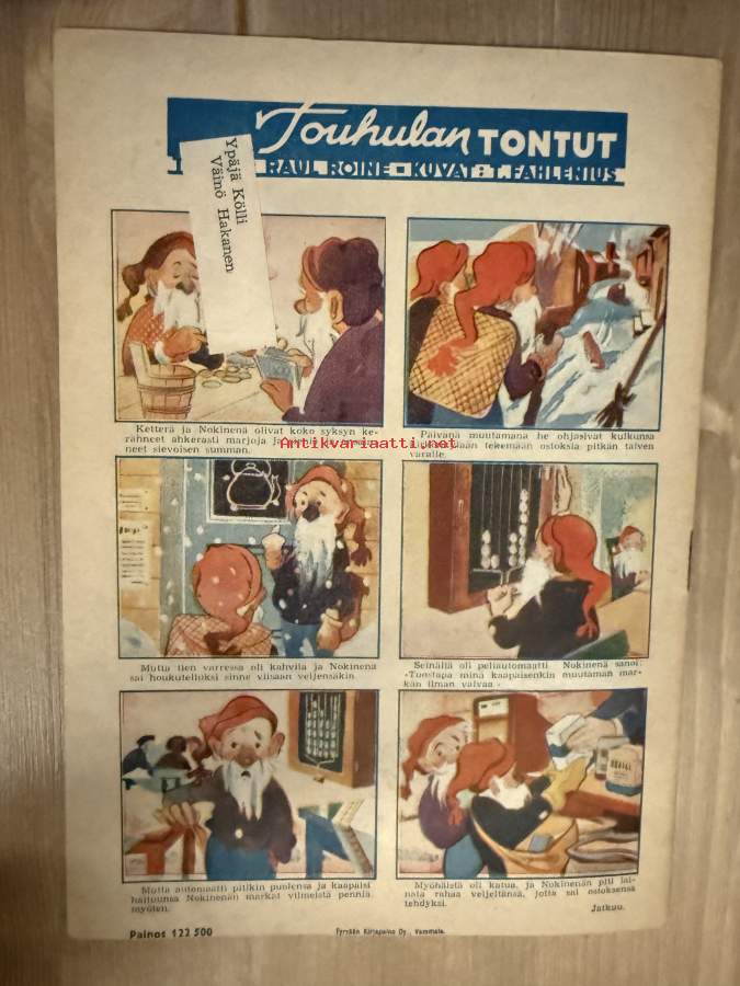 Säästäjä 1946 / 6 (takasivulla sarjakuva Touhulan Tontut kuvat Rudolf Koivu, sanat Raul Roine)sis,mm.Kapt,Hell; Majuri Kennedy säästää.